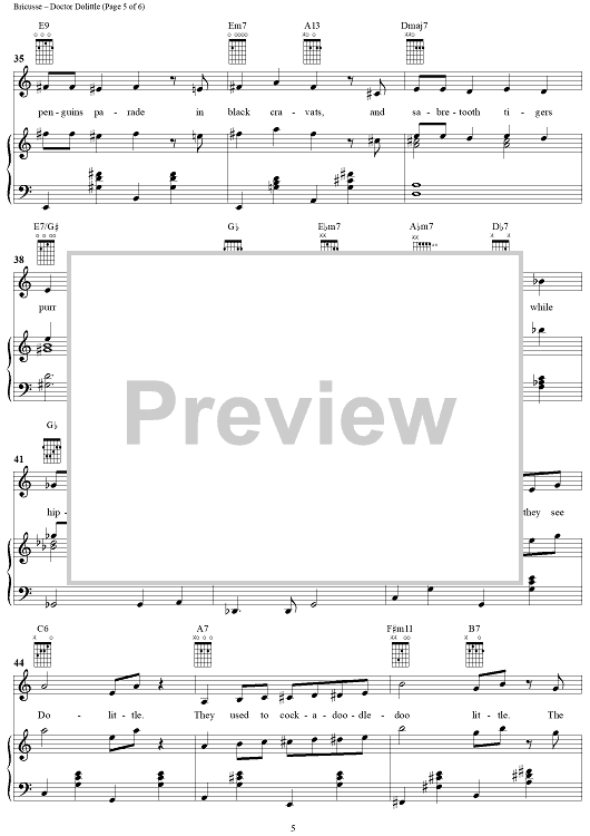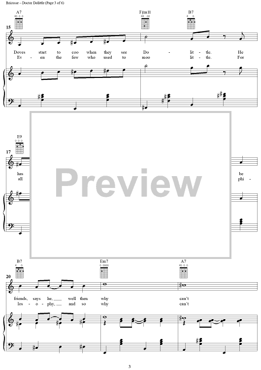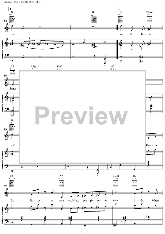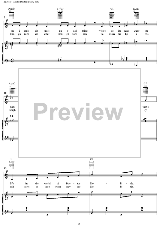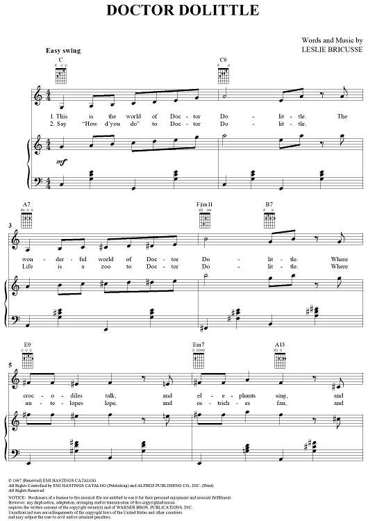 Digital Sheet Music for Doctor Dolittle by Leslie Bricusse scored for Piano/Vocal/Chords; id:362819