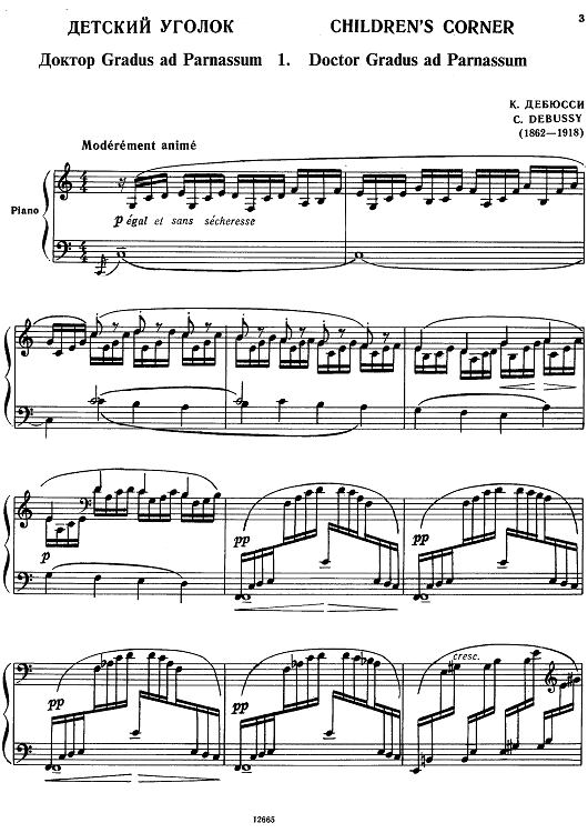 Digital Sheet Music for Doctor Gradus ad Parnassum from Children's Corner by Claude Debussy scored for Piano Solo; id:333096