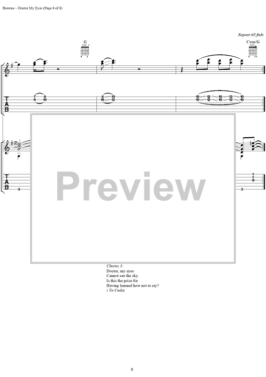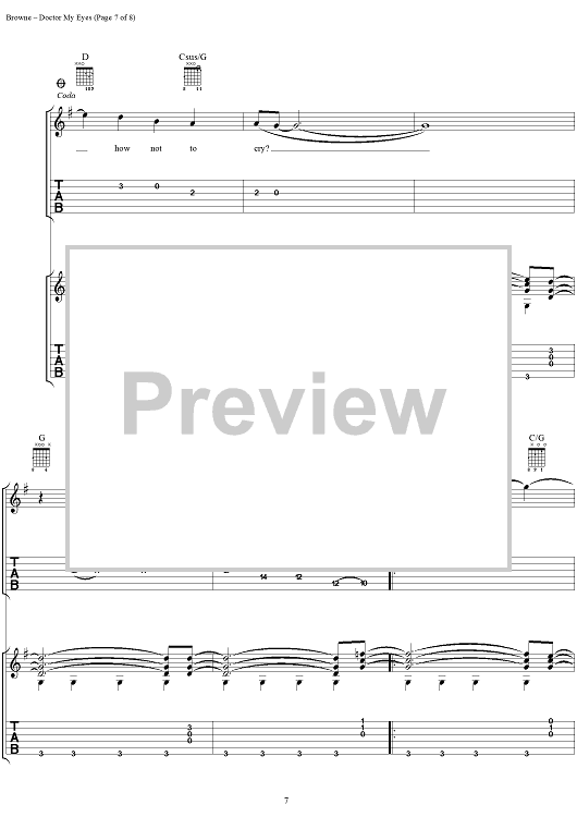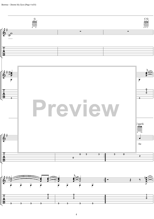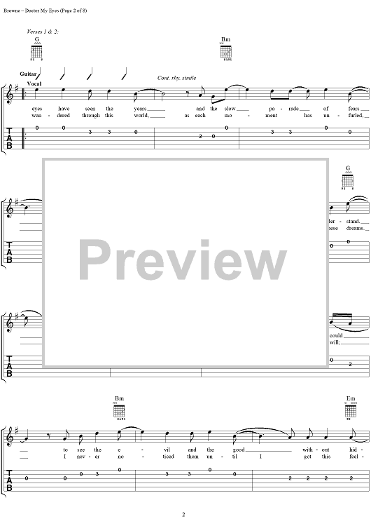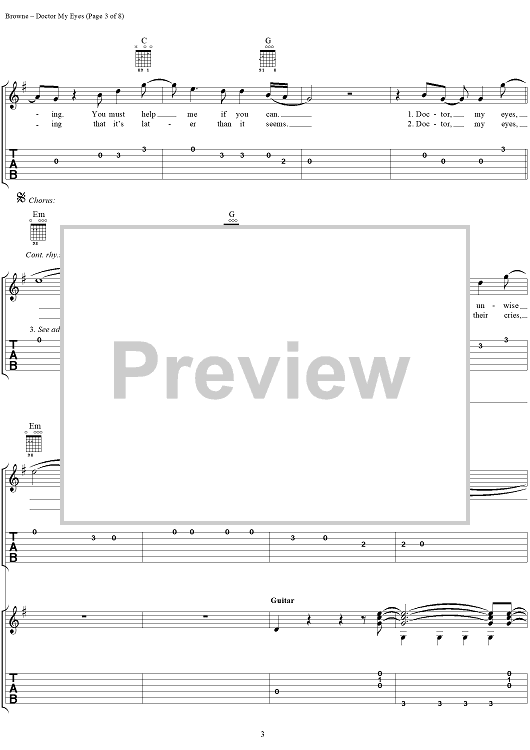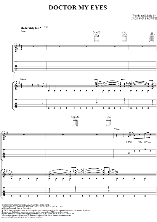 Digital Sheet Music for Doctor My Eyes by Jackson Browne, Louis Martinez scored for Easy Guitar Tab/Vocal; id:274457