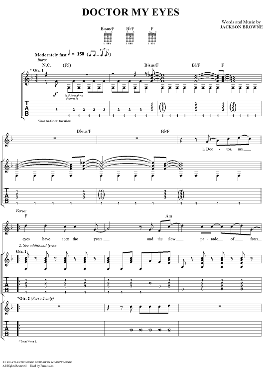 "Doctor My Eyes" Sheet Music by Jackson Browne