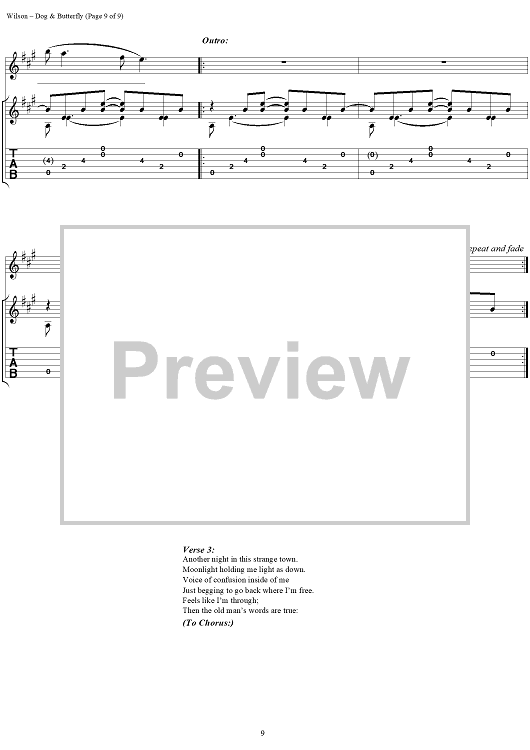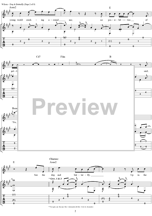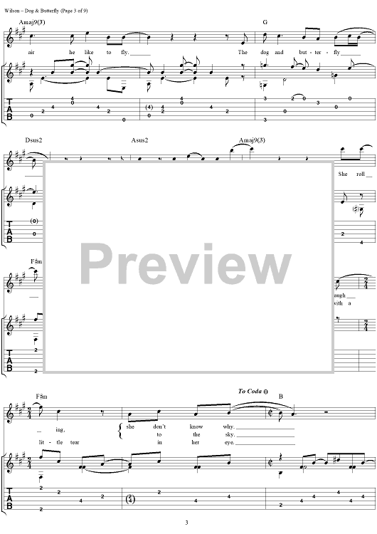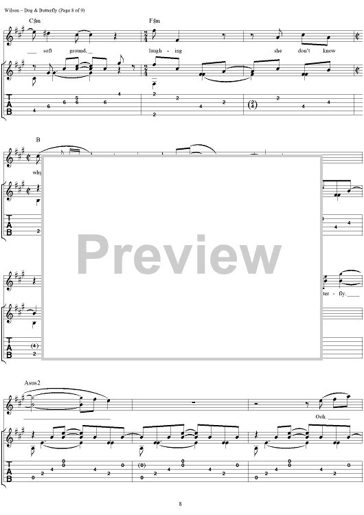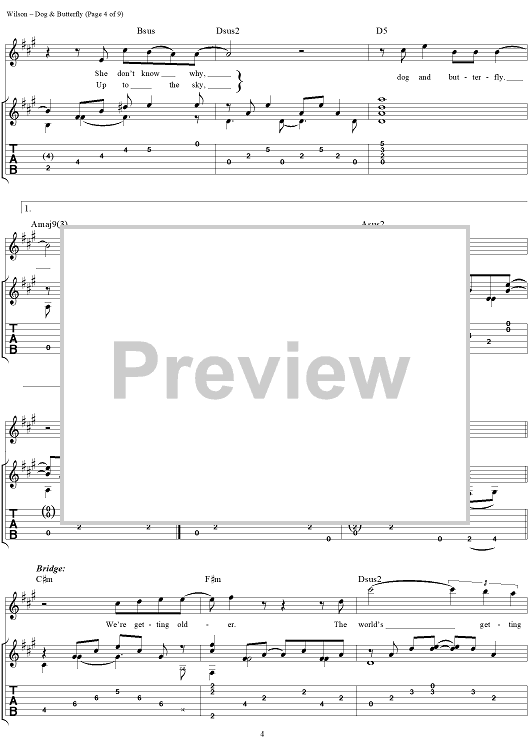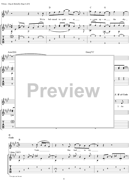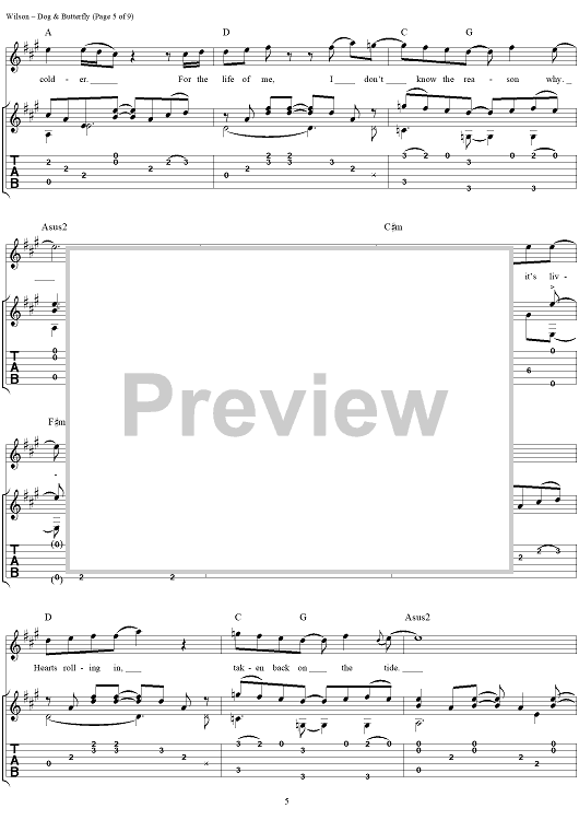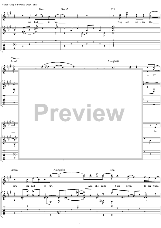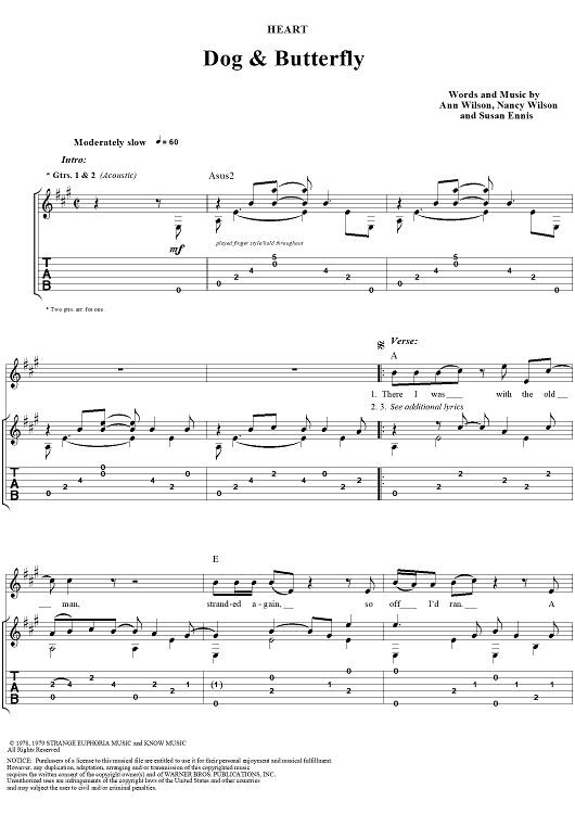 Digital Sheet Music for Dog and Butterfly by Heart, Ann Wilson, Nancy Wilson, Susan Ennis scored for Guitar Tab/Vocal; id:110794