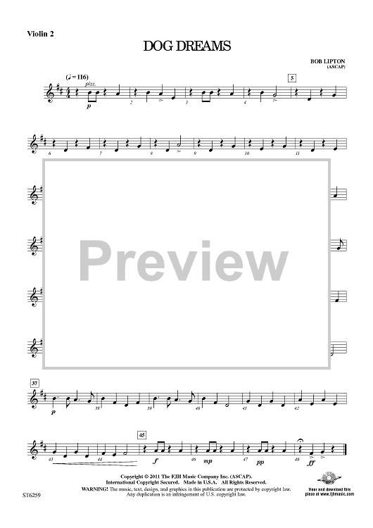 Digital Sheet Music for Dog Dreams - Violin 2 (Viola T.C.) by Bob Lipton scored for String Orchestra; id:421696