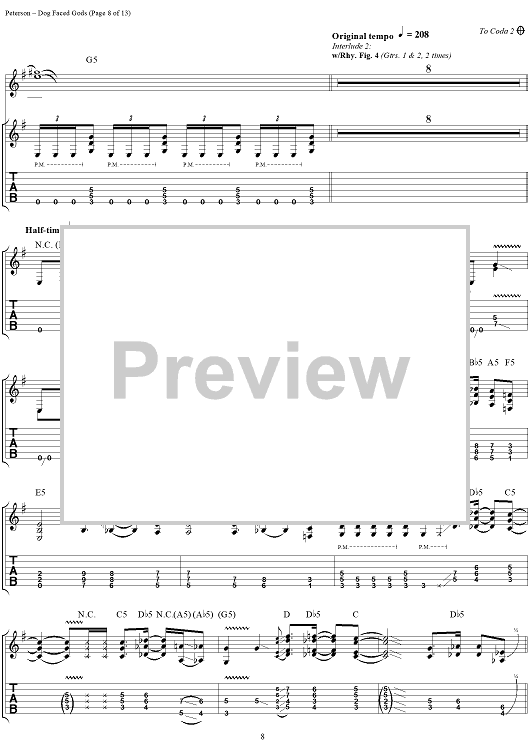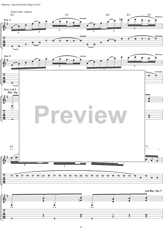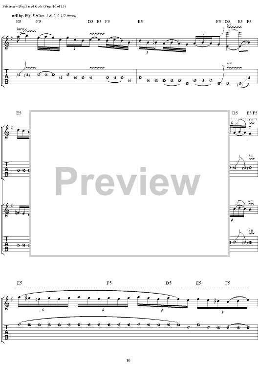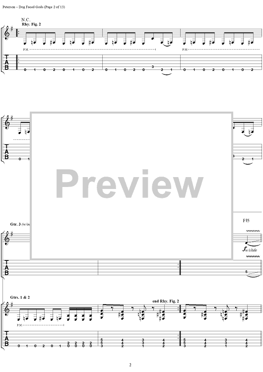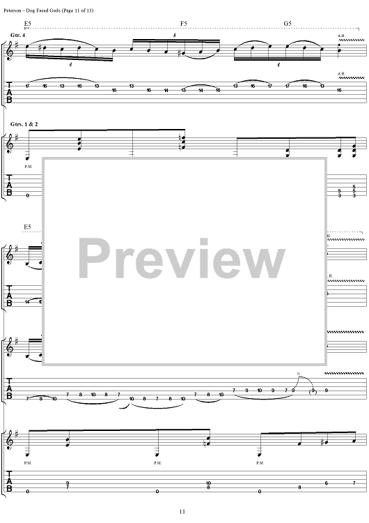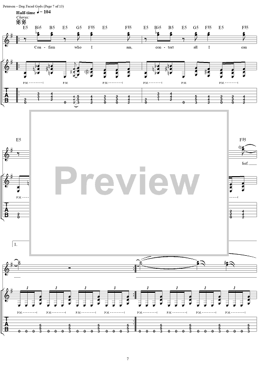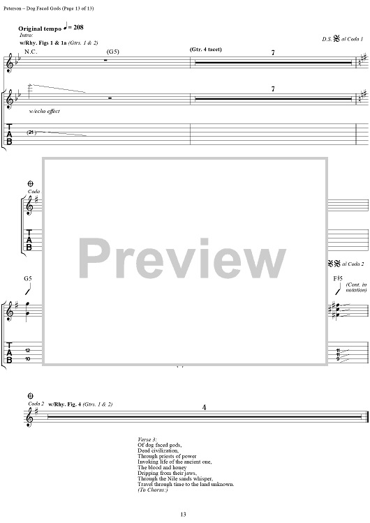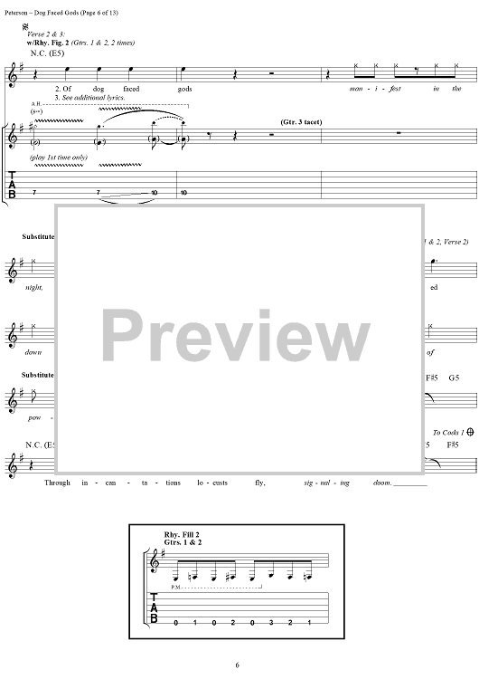 Digital Sheet Music for Dog Faced Gods by Eric Peterson, Chuck Billy, James Murphy, Testament scored for Guitar Tab/Vocal; id:114400