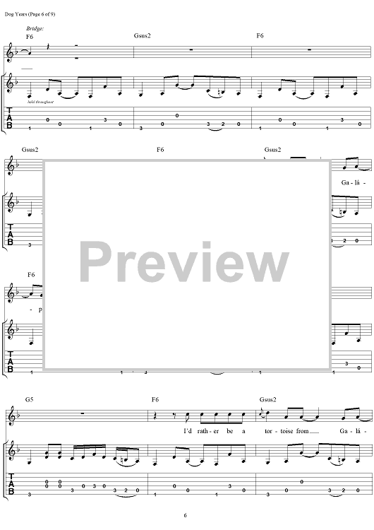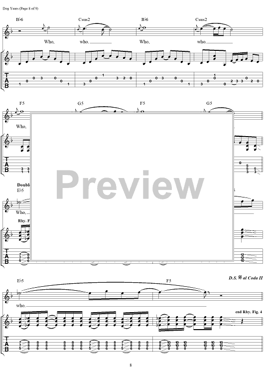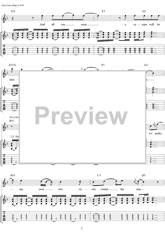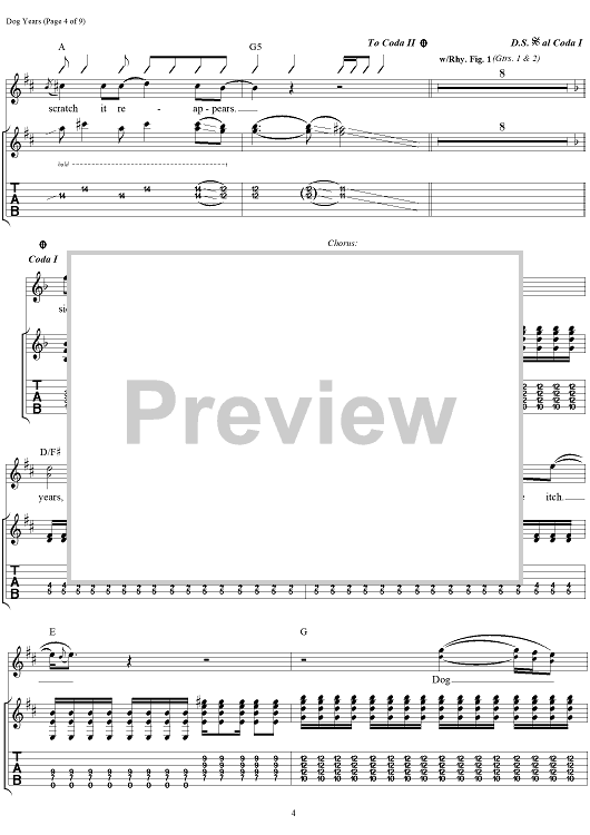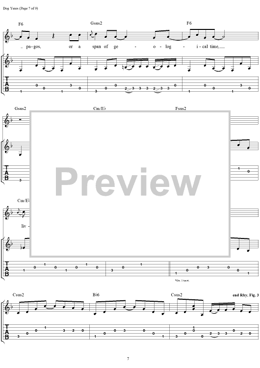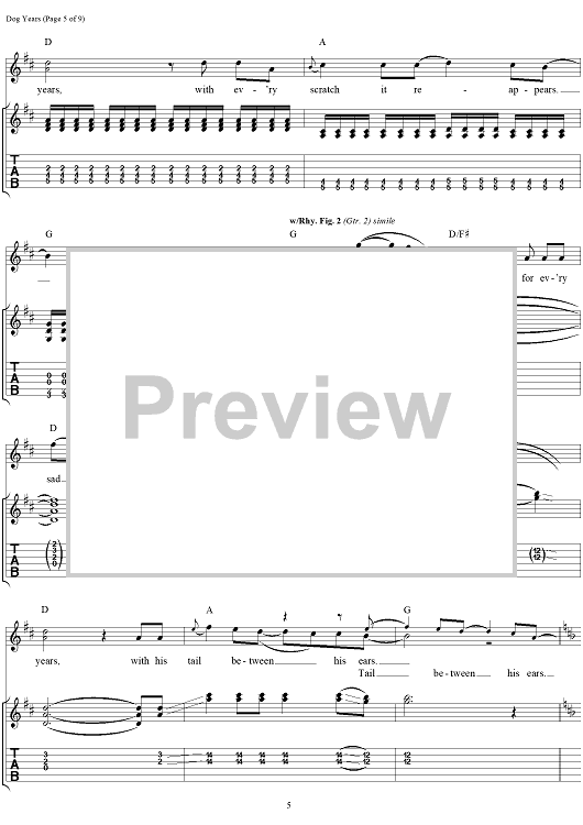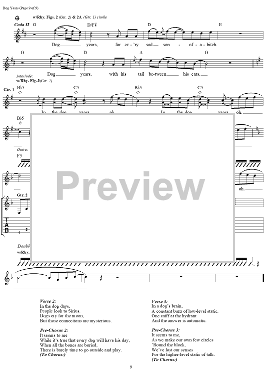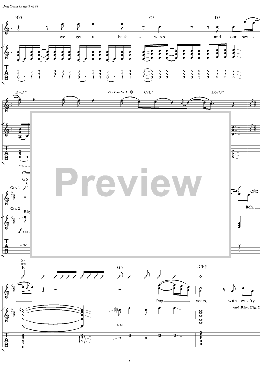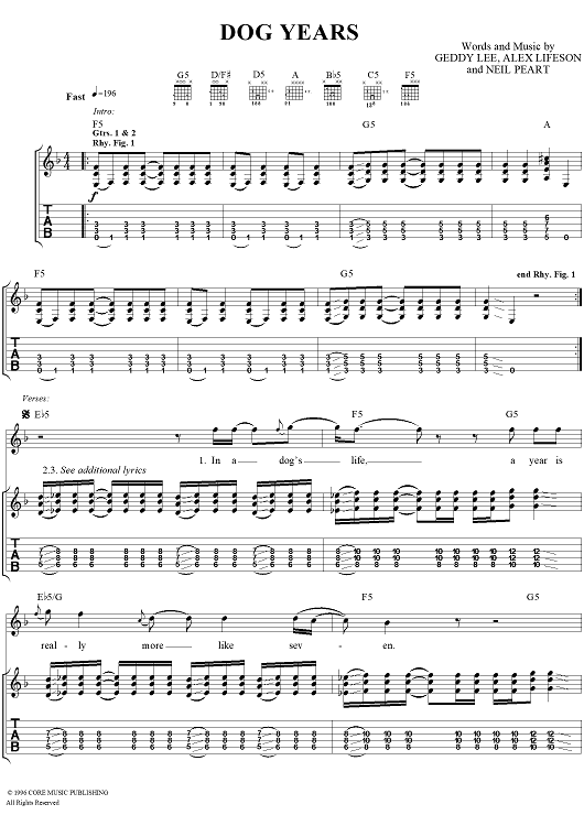 Digital Sheet Music for Dog Years by Rush, Geddy Lee, Alex Lifeson, Neil Peart scored for Guitar Tab/Vocal; id:111565
