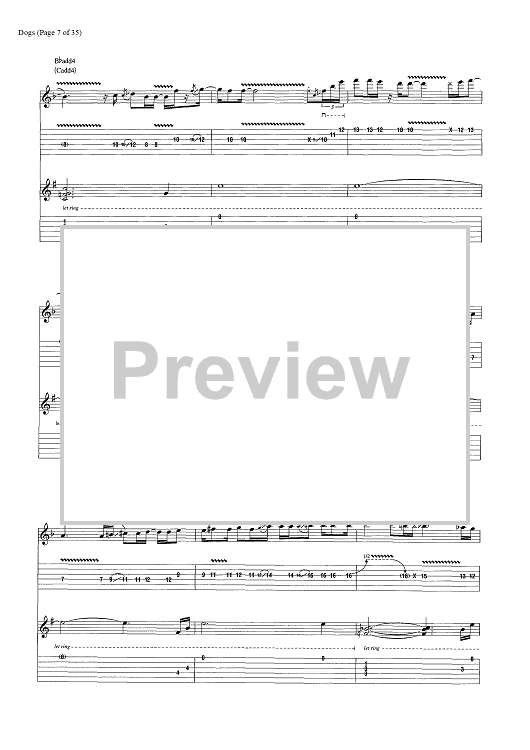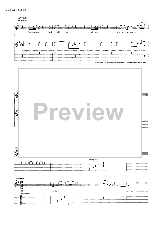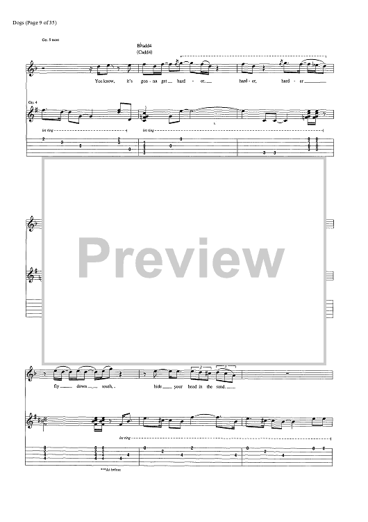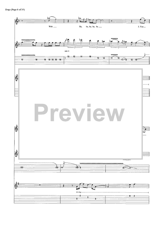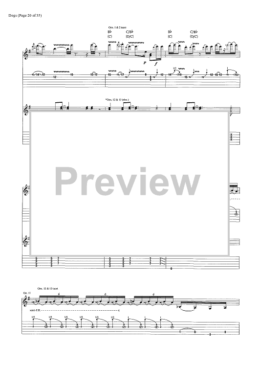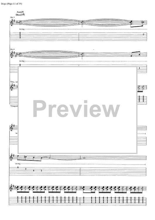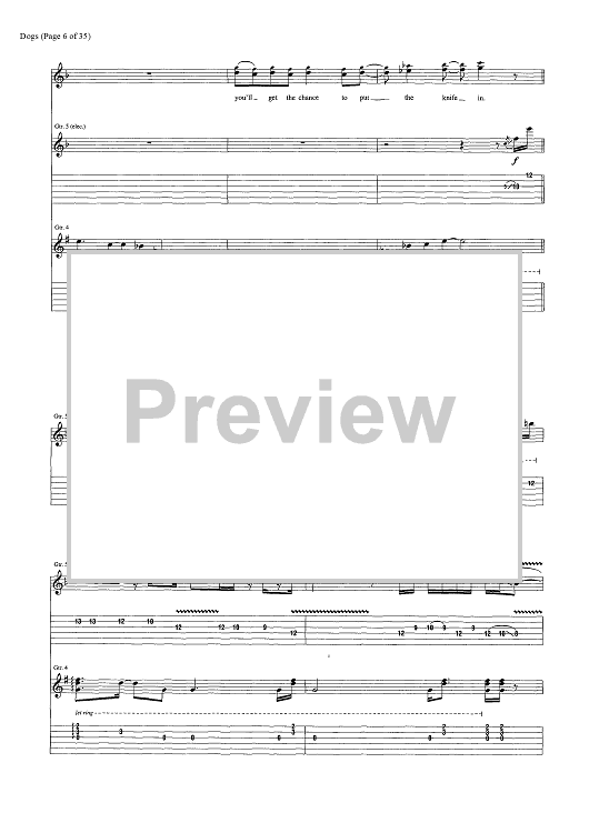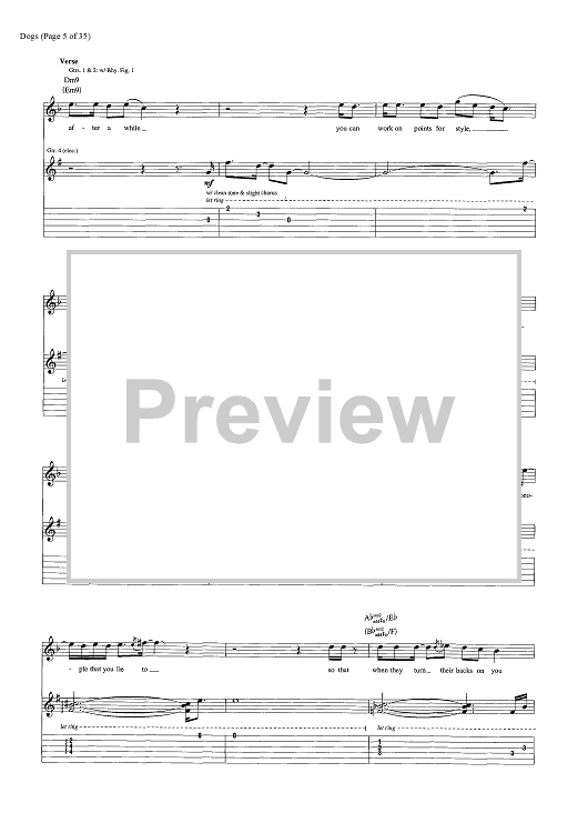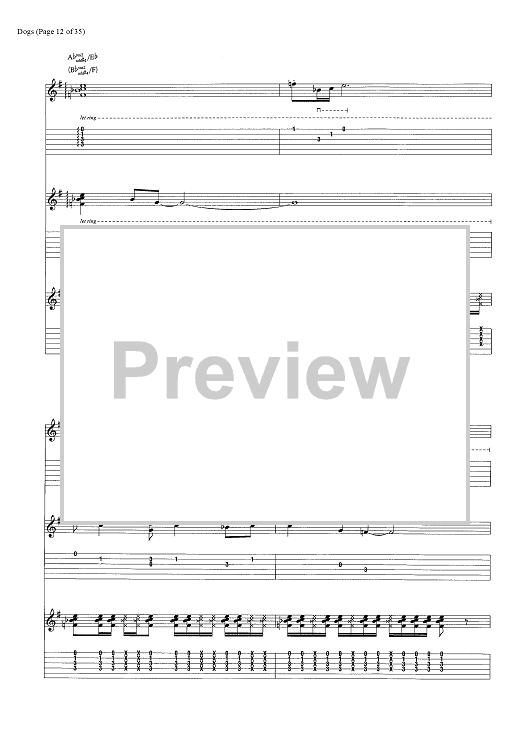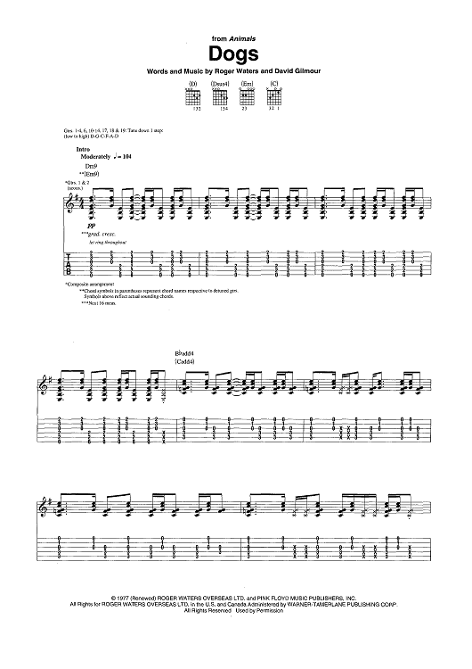 Digital Sheet Music for Dogs by Pink Floyd, David Gilmour, Roger Waters scored for Guitar Tab/Vocal/Chords; id:444870