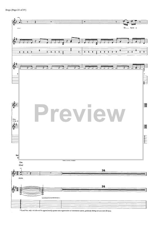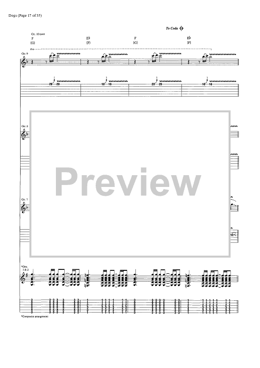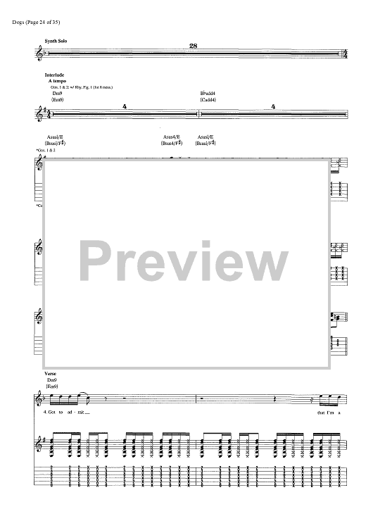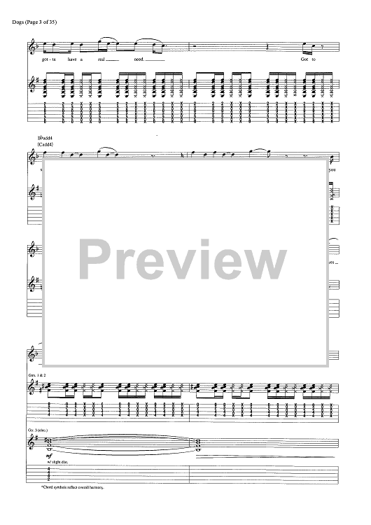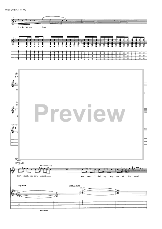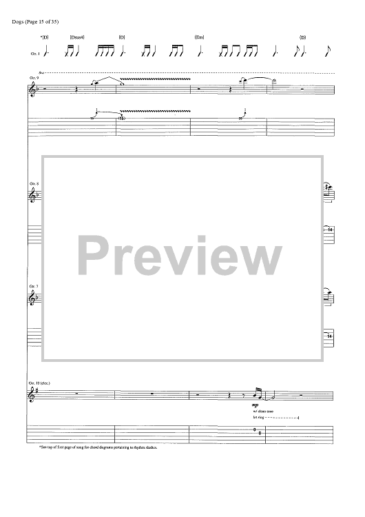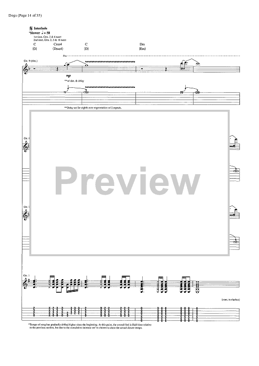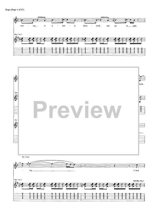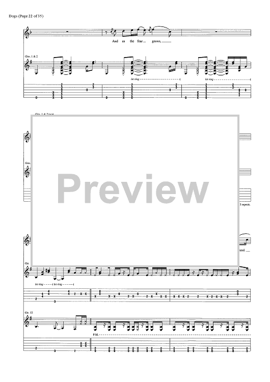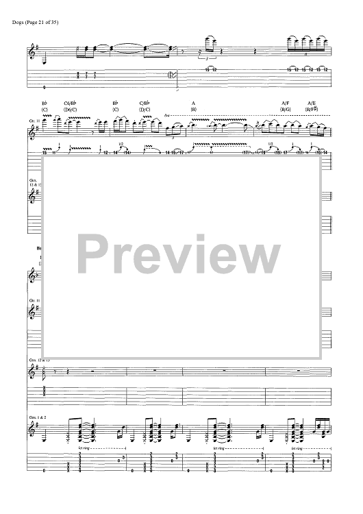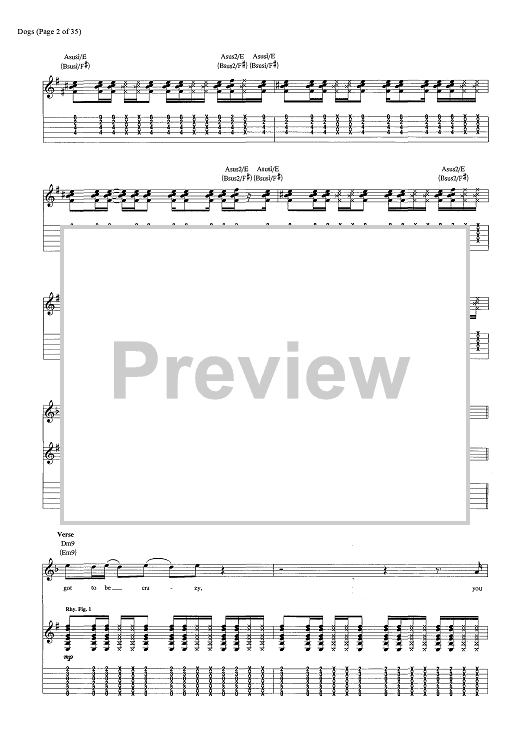 Digital Sheet Music for Dogs by Pink Floyd, David Gilmour, Roger Waters scored for Guitar Tab/Vocal/Chords; id:444870