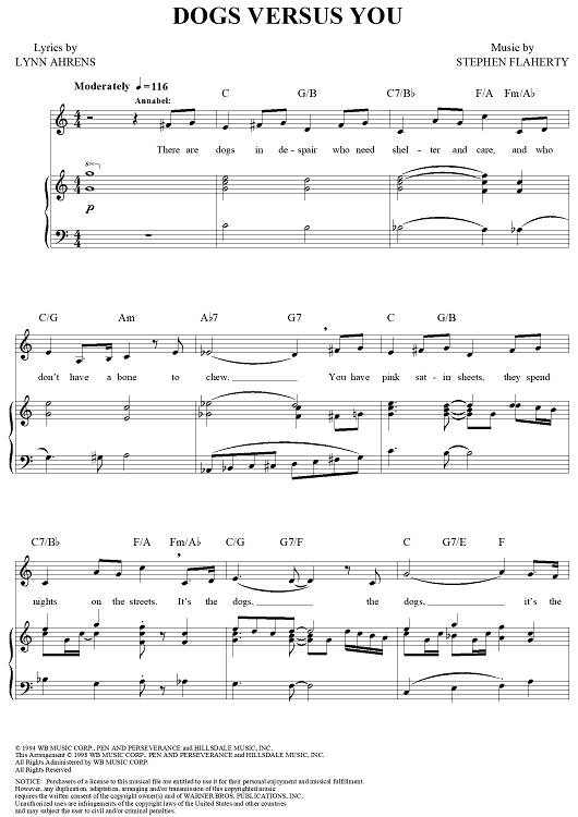 Digital Sheet Music for Dogs Versus You by Stephen Flaherty, Lynn Ahrens scored for Piano/Vocal/Chords; id:311580