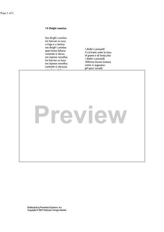 "Doighi camelos - Lyrics" Sheet Music by Antonio Sanna
