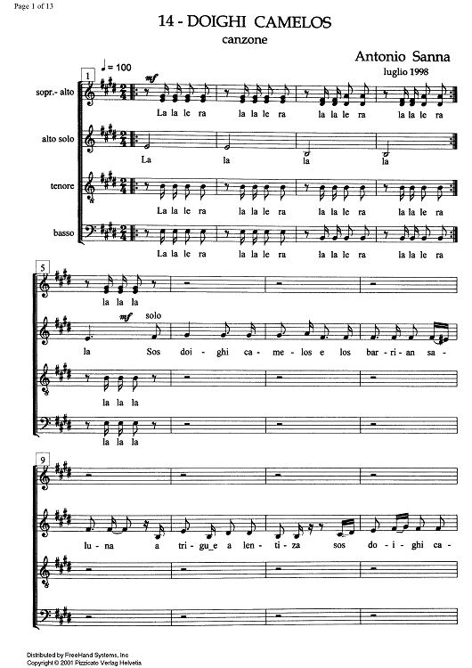 Digital Sheet Music for Doighi camelos - Score by , Antonio Sanna scored for SATB Choir; id:345198