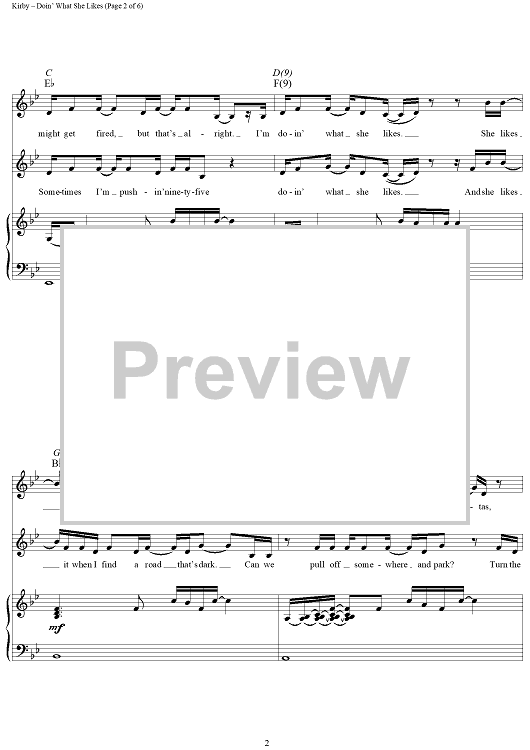 Digital Sheet Music for Doin' What She Likes by Blake Shelton, Wade Kirby, Philip O'Donnell scored for Piano/Vocal/Chords; id:441310