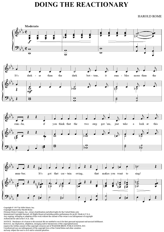 Digital Sheet Music for Doing the Reactionary by Harold Rome scored for Piano/Vocal; id:316023