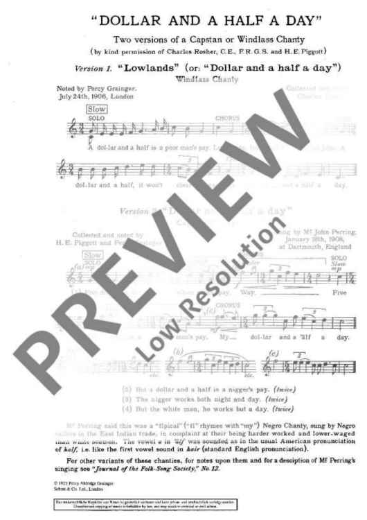 "Dollar and a half a Day - Choral Score" Sheet Music by George Percy Aldridge Grainger
