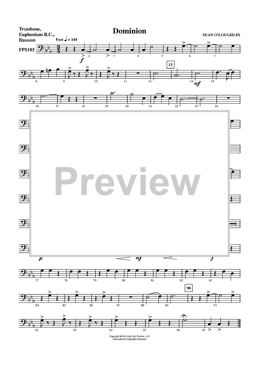 Digital Sheet Music for Dominion - Trombone, Euphonium BC, Bassoon by Sean O'Loughlin scored for Concert Band; id:435817