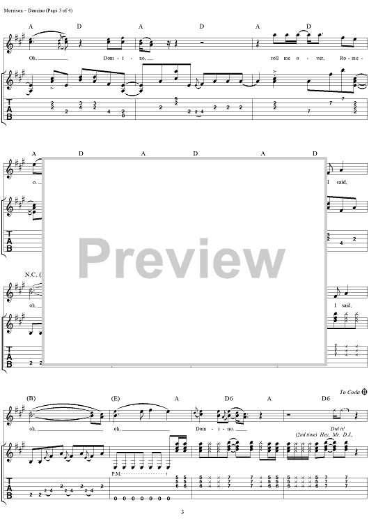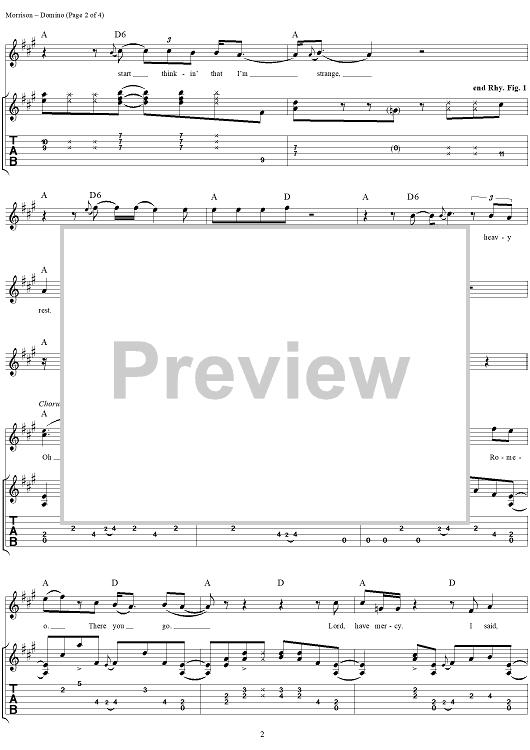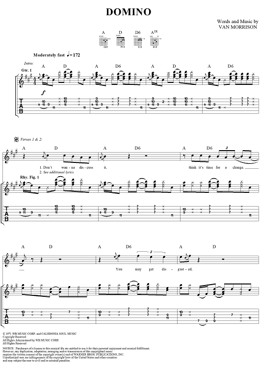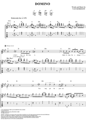 Digital Sheet Music for Domino by Van Morrison scored for Guitar Tab/Vocal; id:287093