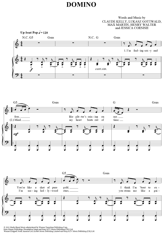 Digital Sheet Music for Domino by Max Martin, Claude Kelly, Jessica Cornish, Lukasz Gottwald, Jessie J, Henry Walter scored for Piano/Vocal/Chords; id:428760
