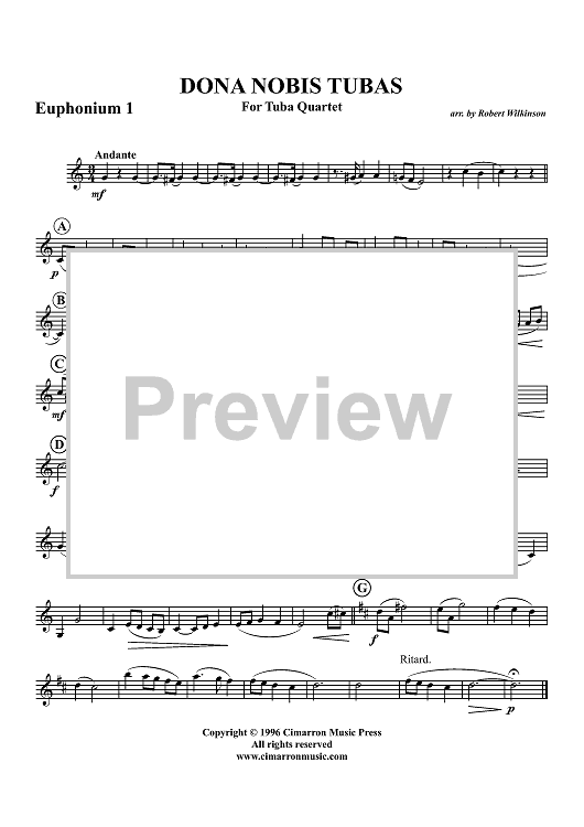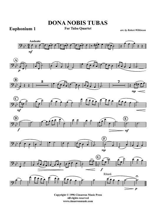 Digital Sheet Music for Dona Nobis Tubas - Euphonium 1 BC/TC by Robert Wilkinson scored for Tuba Quartet; id:316091