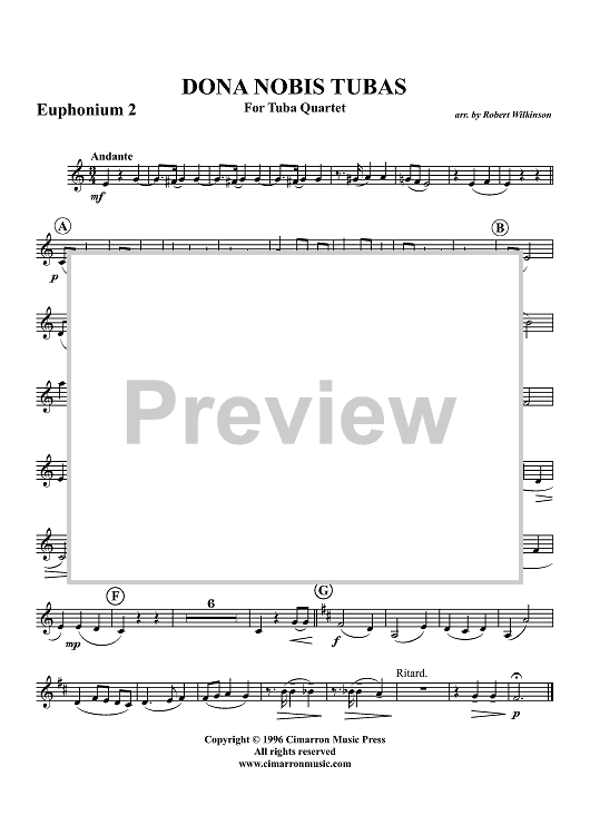 Digital Sheet Music for Dona Nobis Tubas - Euphonium 2 BC/TC by Robert Wilkinson scored for Tuba Quartet; id:316092