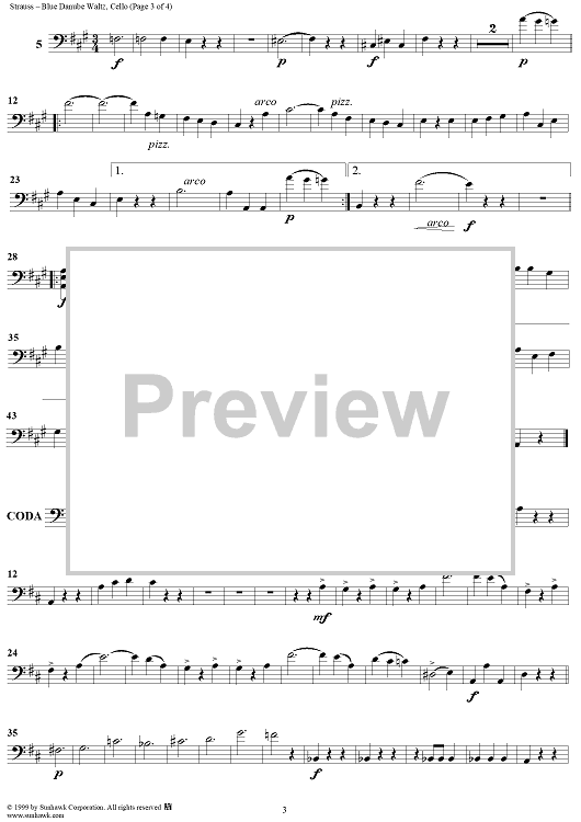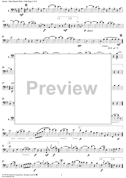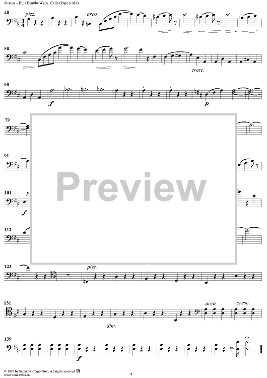 Digital Sheet Music for Donau-Walzer (On the Beautiful Blue Danube Waltz), Op. 314 - Waltz - Op. 314 - Cello by Johann Strauss II scored for String Quartet; id:262599