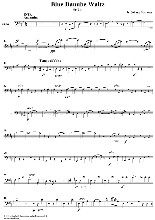 "Donau-Walzer (On the Beautiful Blue Danube Waltz), Op. 314 - Waltz - Op. 314 - Cello" Sheet Music by Johann Strauss II
