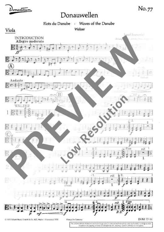 Digital Sheet Music for Donauwellen-Walzer - Viola by Iosif Ivanovici scored for Salon Orchestra; id:488000
