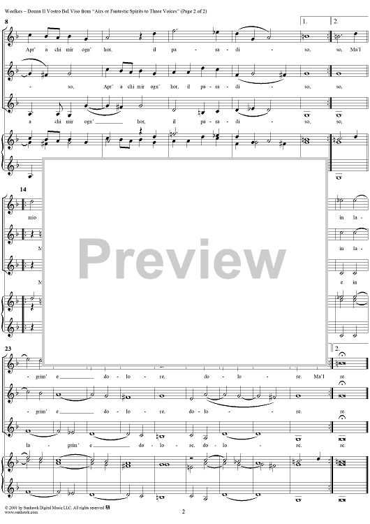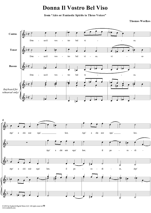 Digital Sheet Music for Donna il Vostro Bel Viso by Thomas Weelkes scored for Mixed Chorus; id:262356