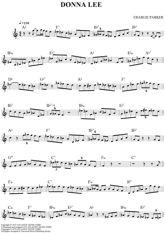"Donna Lee" Sheet Music by Charlie Parker