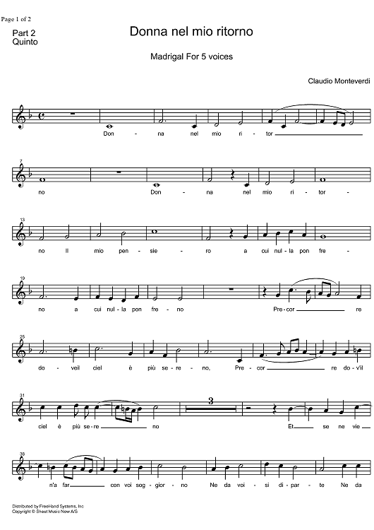 "Donna nel mio ritorno" Sheet Music by Claudio Monteverdi
