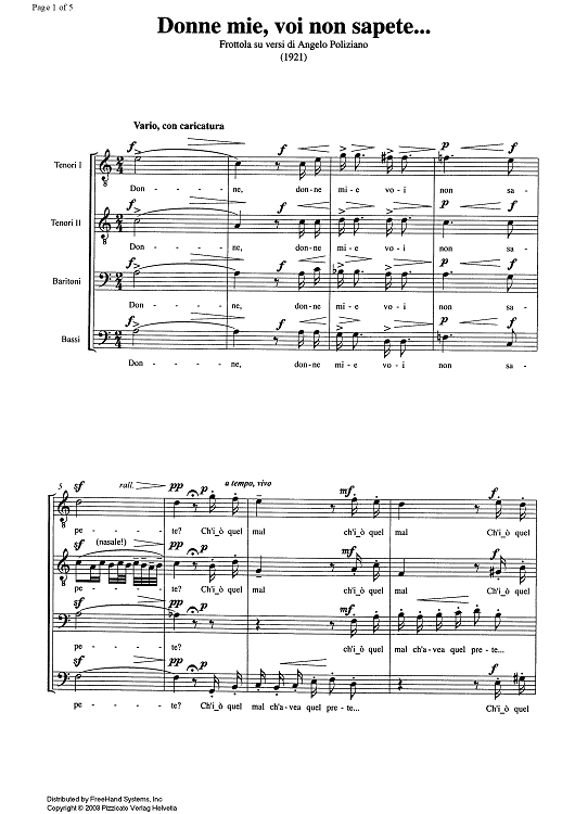 Digital Sheet Music for Donne mie, voi non sapete... - Score by , Antonio Illersberg scored for Male Choir; id:351651