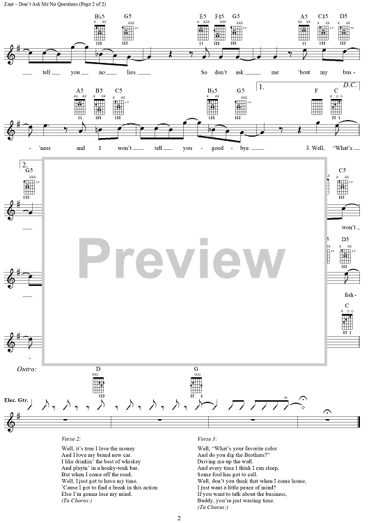 Digital Sheet Music for Don't Ask Me No Questions by Lynyrd Skynyrd, Gary Rossington, Ronnie Van Zant scored for Easy Guitar/Vocal; id:283492