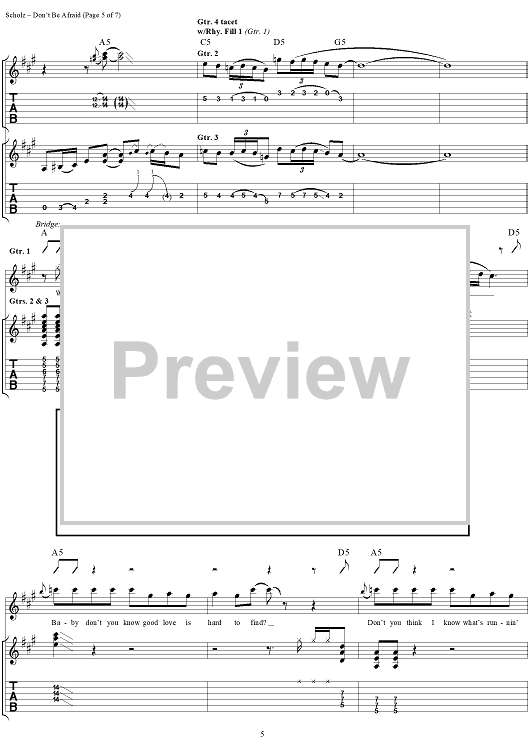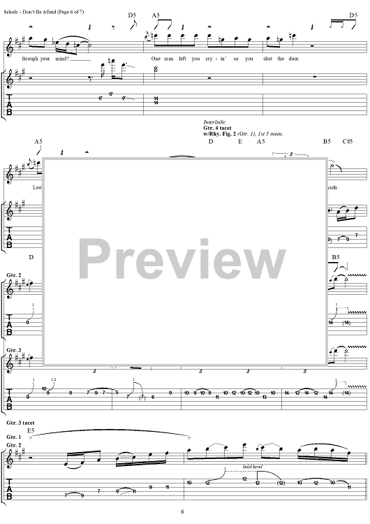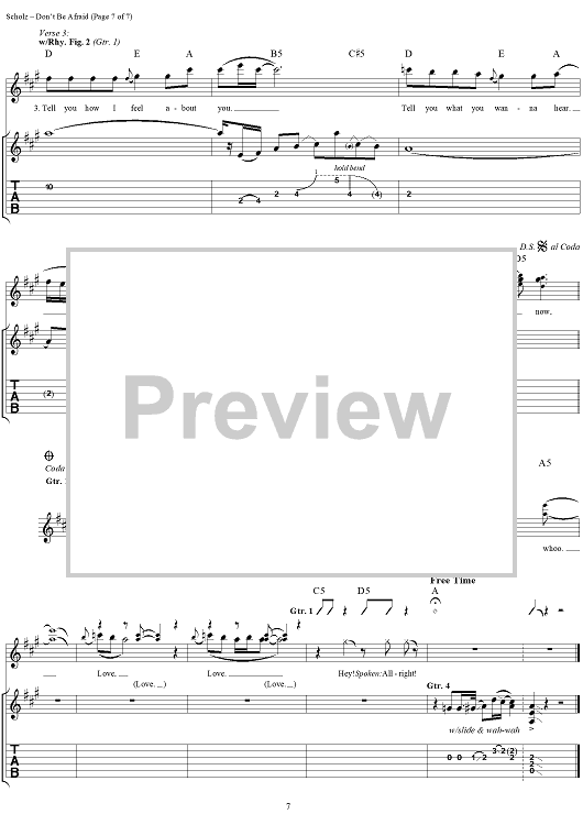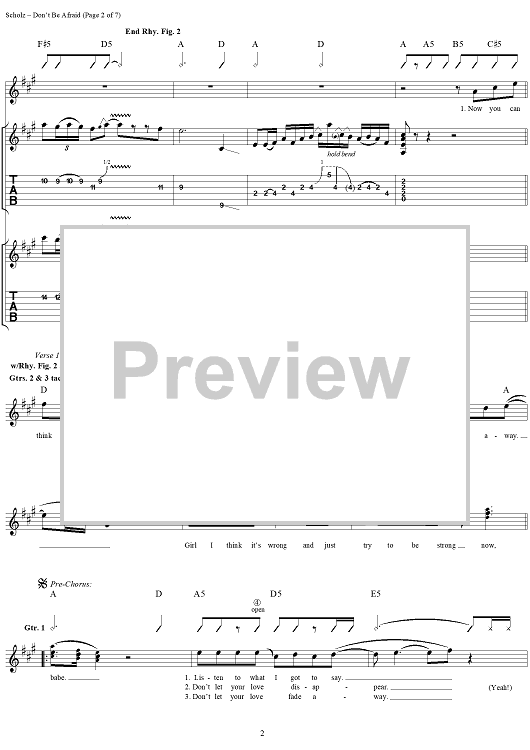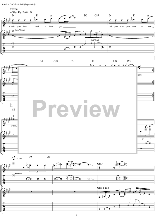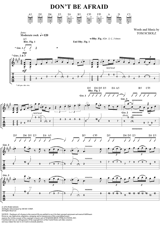 Digital Sheet Music for Don't Be Afraid by Boston, Tom Scholz scored for Guitar Tab/Vocal; id:287124
