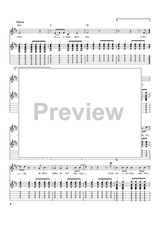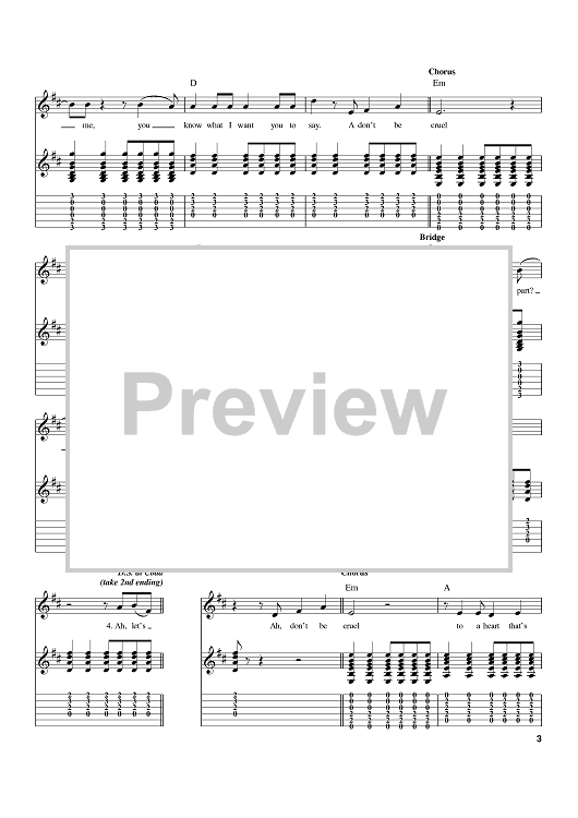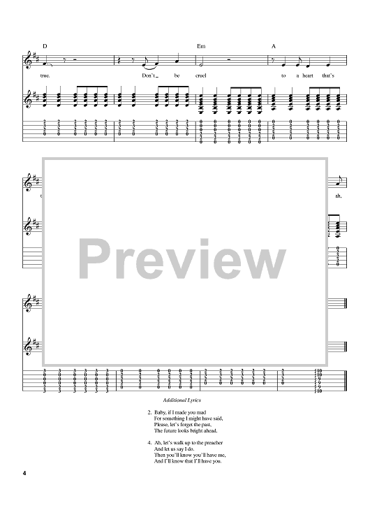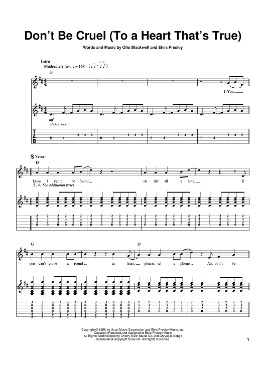 Digital Sheet Music for Don't Be Cruel (To A Heart That's True) by Elvis Presley, Cheap Trick, John Davenport scored for Guitar Tab; id:380552