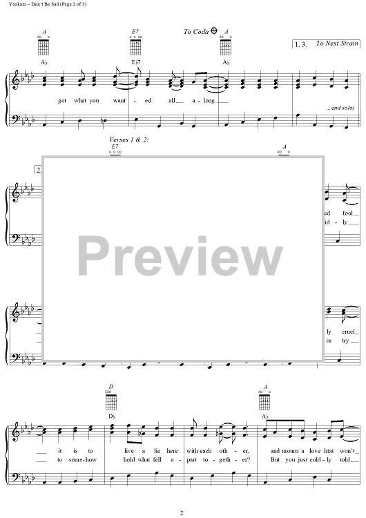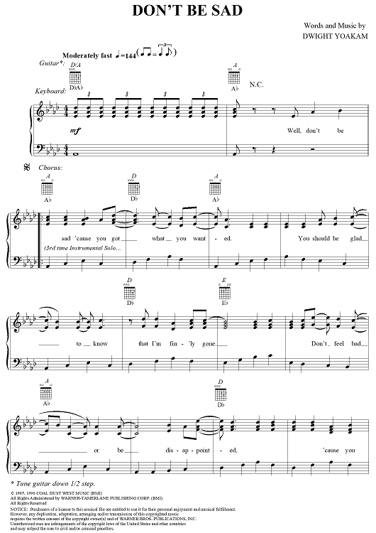 Digital Sheet Music for Don't Be Sad by Dwight Yoakam scored for Piano/Vocal/Chords; id:262934