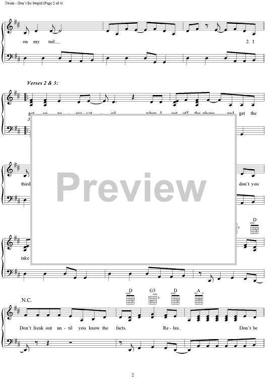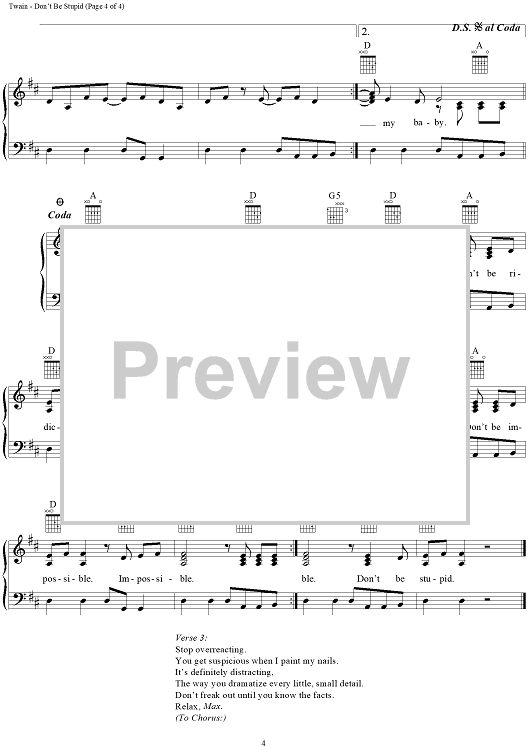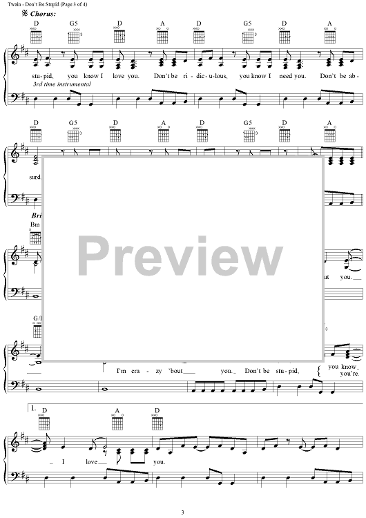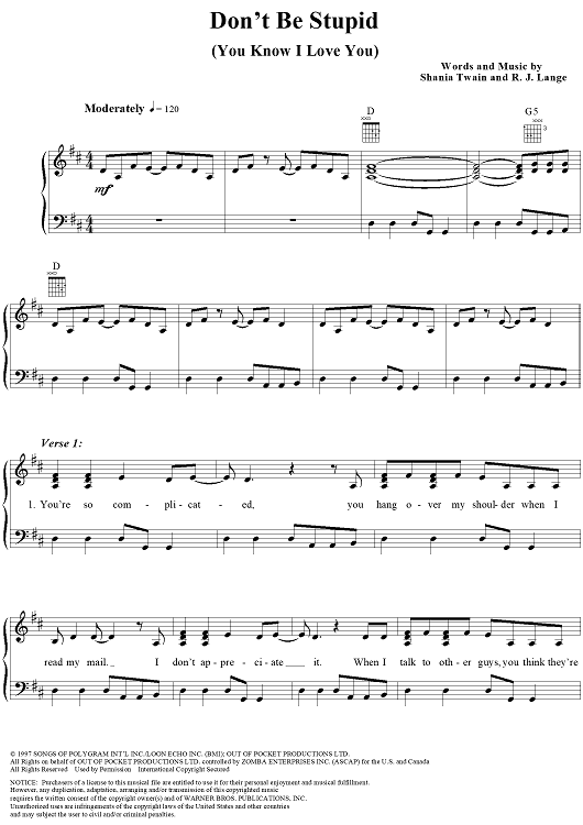 Digital Sheet Music for Don't Be Stupid (You Know I Love You) by Shania Twain, Robert Lange scored for Piano/Vocal/Chords; id:111861