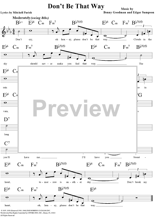 Digital Sheet Music for Don't Be That Way by Mitchell Parish, Benny Goodman, Edgar Sampson scored for Lead Sheet; id:109960