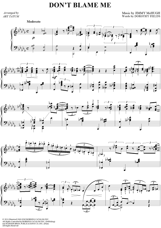 Digital Sheet Music for Don't Blame Me by Art Tatum, Dorothy Fields, Jimmy McHugh scored for Piano Solo; id:111737