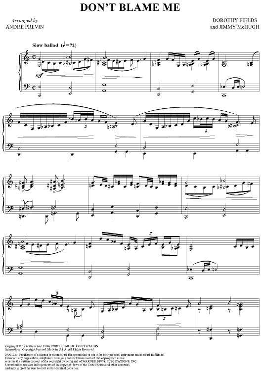 Digital Sheet Music for Don't Blame Me by Dorothy Fields, Jimmy McHugh, Andre Previn scored for Piano Solo; id:313642