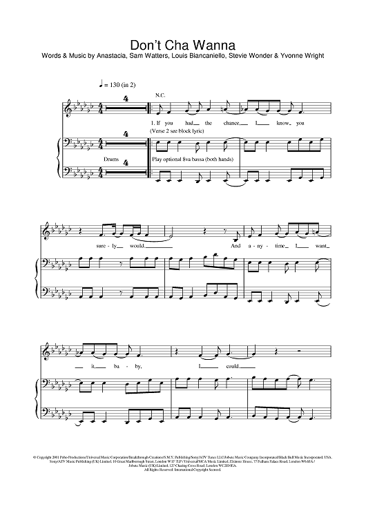 Digital Sheet Music for Don't Cha Wanna by Anastacia scored for Piano/Vocal/Chords; id:377535