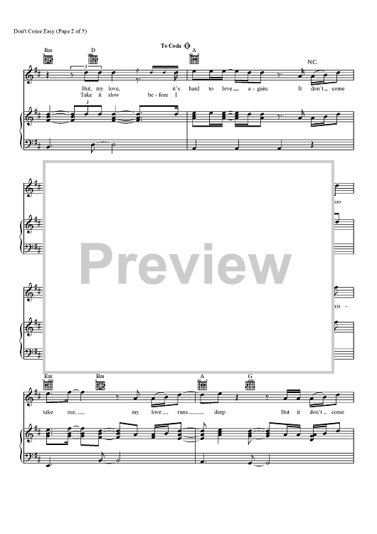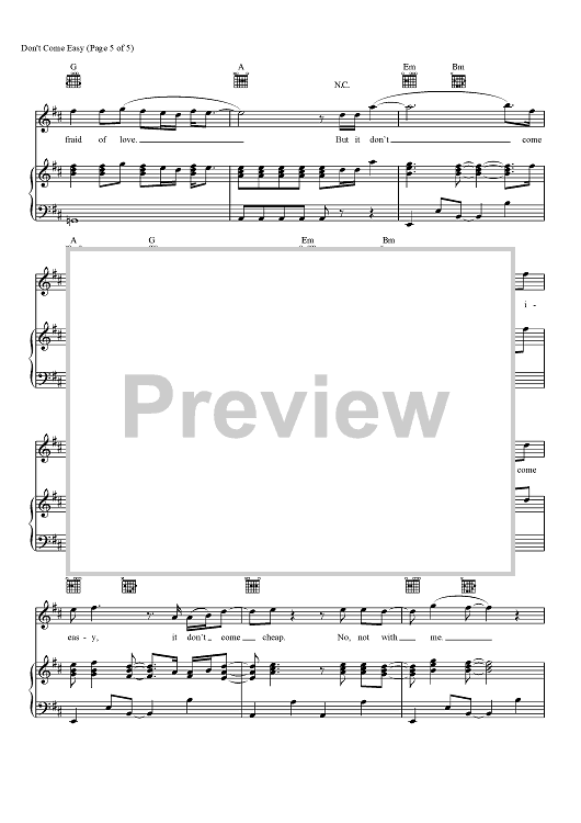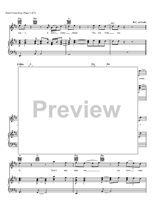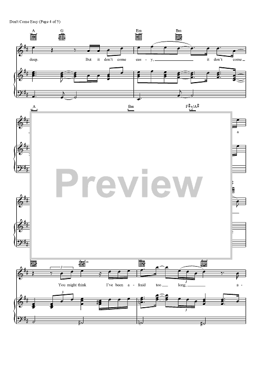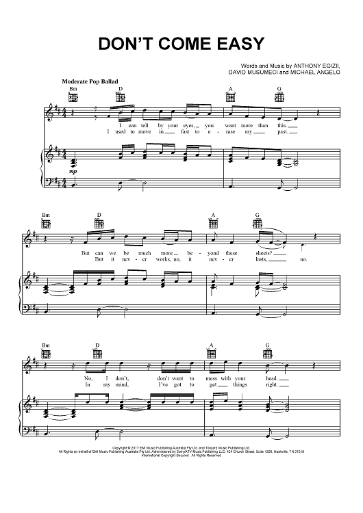 Digital Sheet Music for Don't Come Easy by Isaiah Firebrace, Anthony Egizii, David Musumeci, Michael Angelo scored for Piano/Vocal/Chords; id:465091