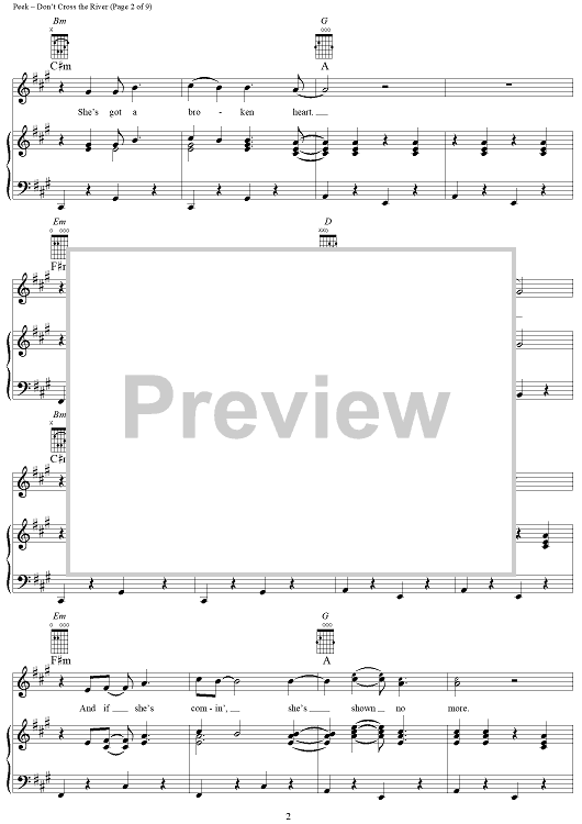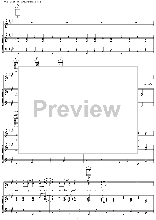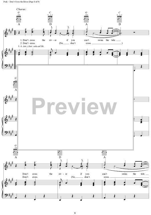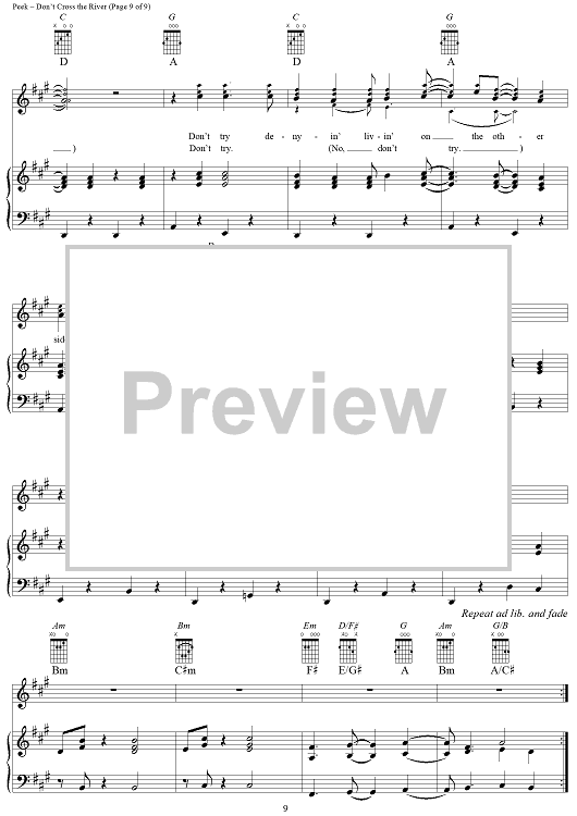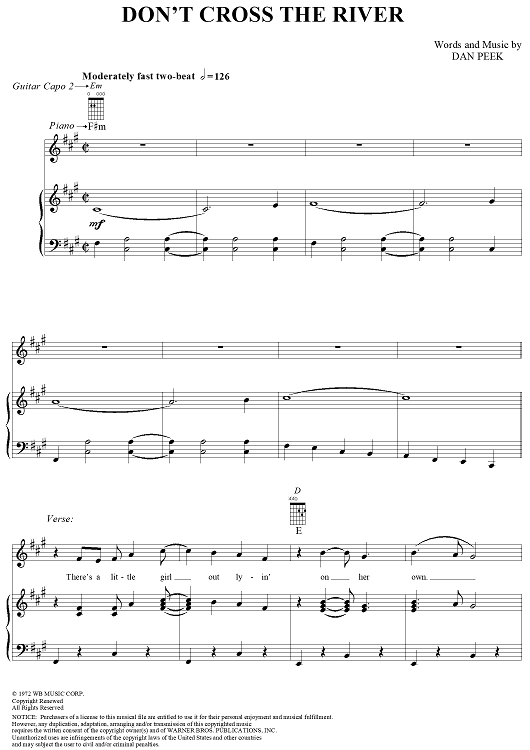 Digital Sheet Music for Don't Cross the River by Garth Brooks, Dan Peek scored for Piano/Vocal/Chords; id:288907