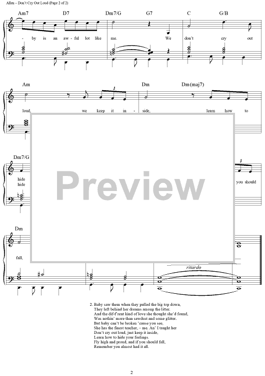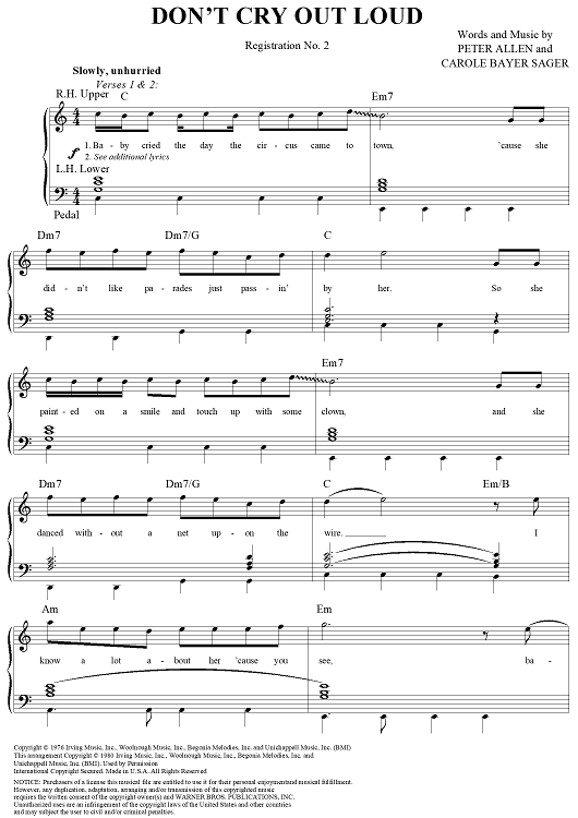 "Don't Cry Out Loud" Sheet Music by Carole Bayer Sager