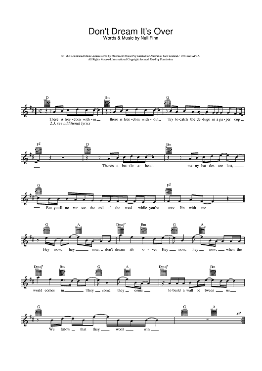 Digital Sheet Music for Don't Dream It's Over by Neil Finn, Crowded House scored for Lead Sheet; id:401670
