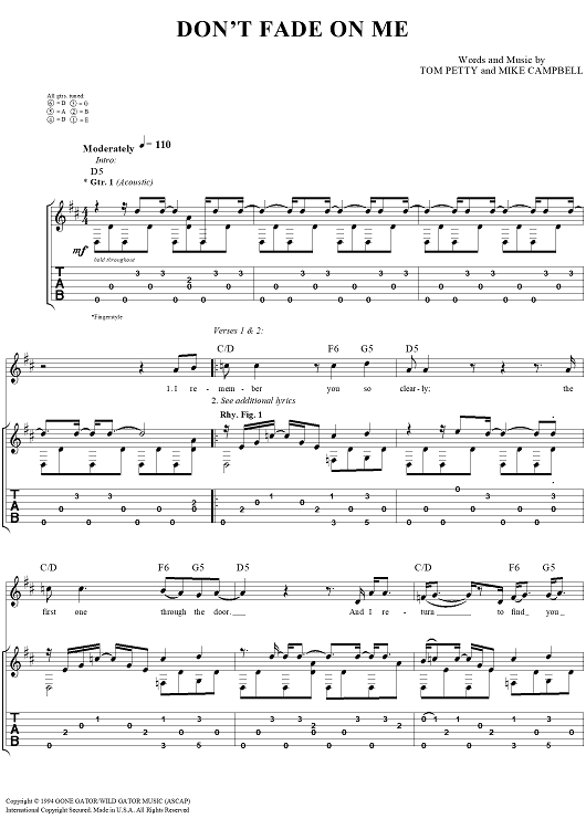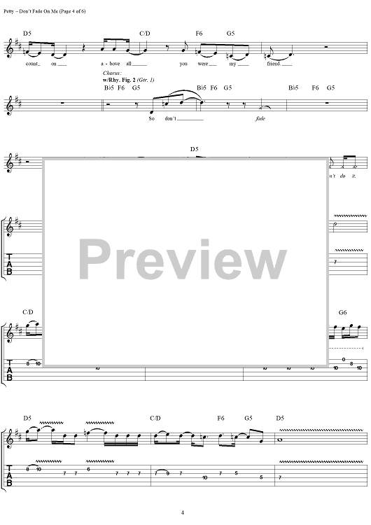 "Don't Fade on Me" Sheet Music by Tom Petty