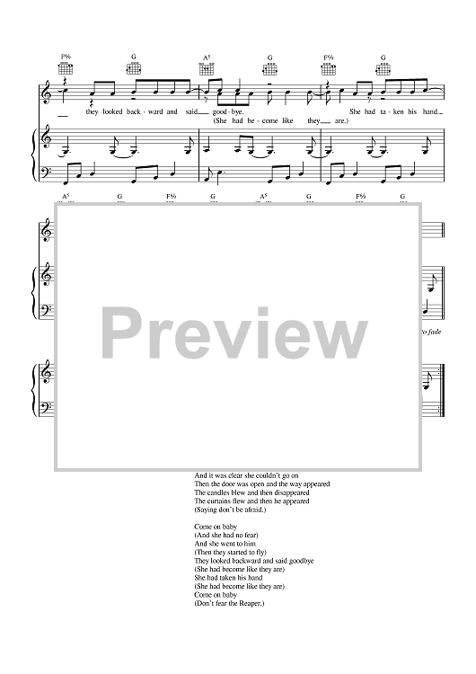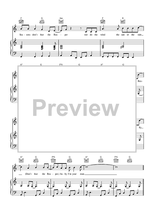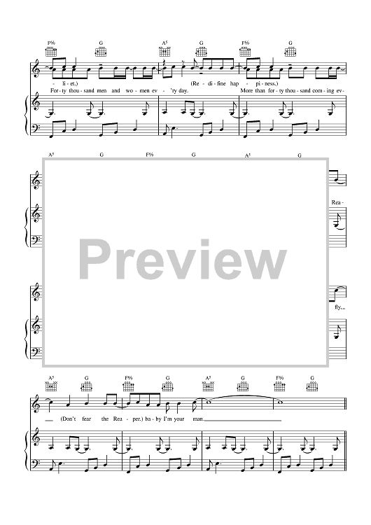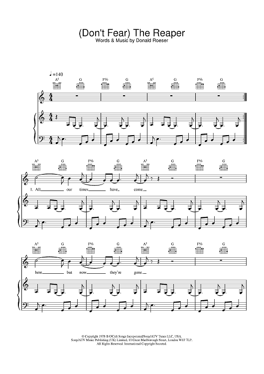 Digital Sheet Music for (Don't Fear) The Reaper by Blue Öyster Cult, Buck Dharma scored for Piano/Vocal/Chords; id:382464