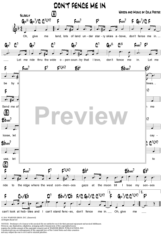 Digital Sheet Music for Don't Fence Me In by Cole Porter scored for Lead Sheet; id:315452