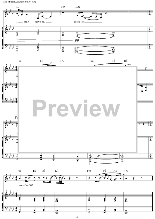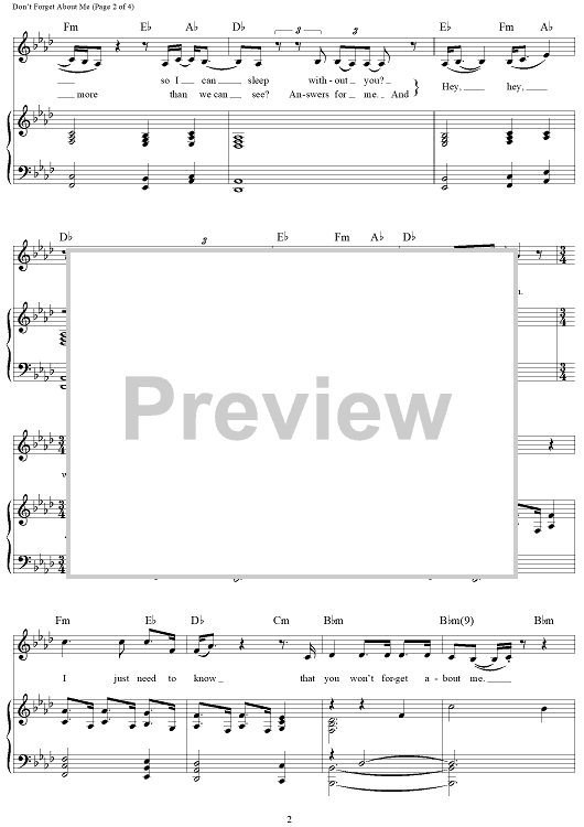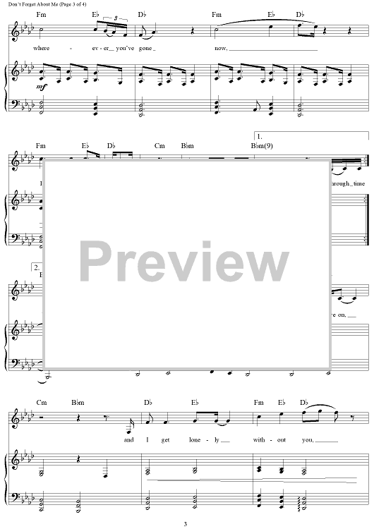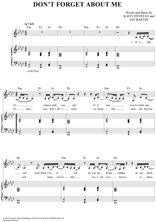 Digital Sheet Music for Don't Forget About Me by Cloves, Kaity Dunstan, Ian Barter scored for Piano/Vocal/Chords; id:461246