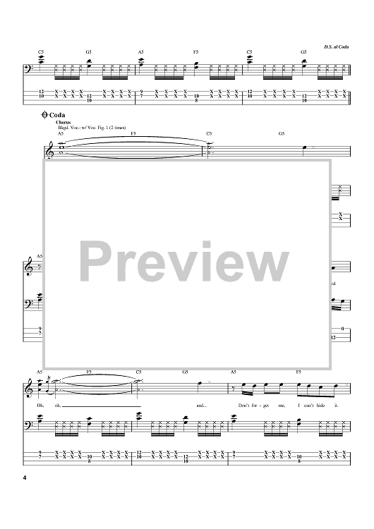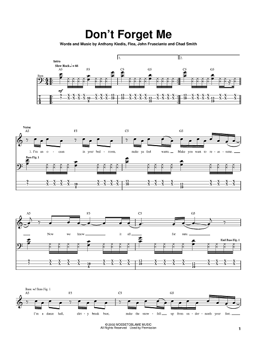 Digital Sheet Music for Don't Forget Me by Flea, John Frusciante, Anthony Kiedis, Red Hot Chili Peppers scored for Bass Tab; id:372148
