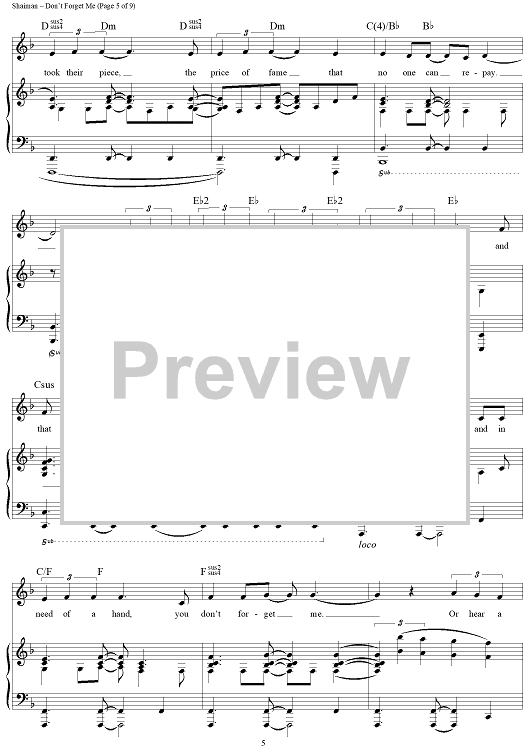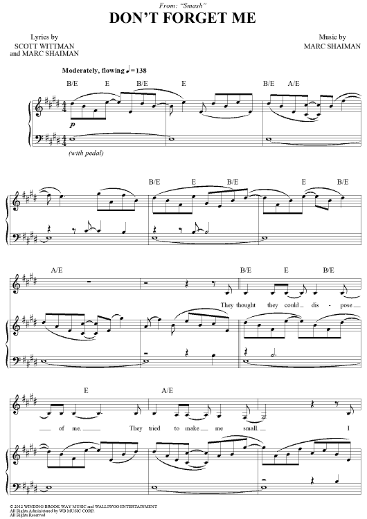 Digital Sheet Music for Don't Forget Me by Marc Shaiman, Scott Wittman, Katharine McPhee scored for Piano/Vocal/Chords; id:430241