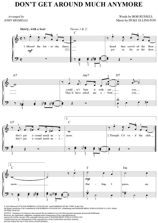 Digital Sheet Music for Don't Get Around Much Anymore by Duke Ellington, John Brimhall, Bob Russell, Willie Nelson scored for Piano/Vocal/Chords; id:270478