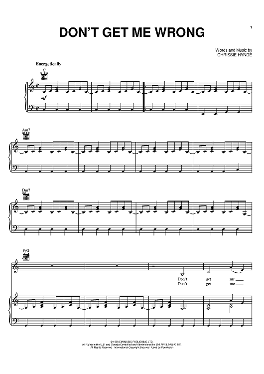 Digital Sheet Music for Don't Get Me Wrong by The Pretenders, Chrissie Hynde scored for Piano/Vocal/Chords; id:393705