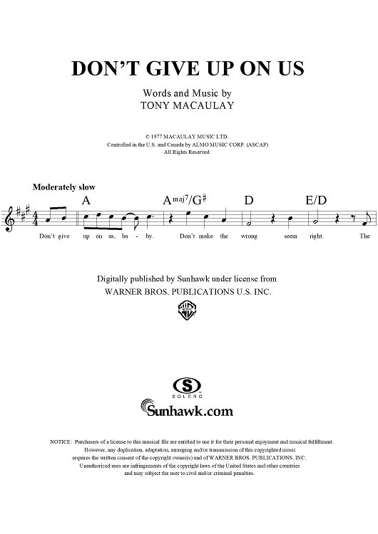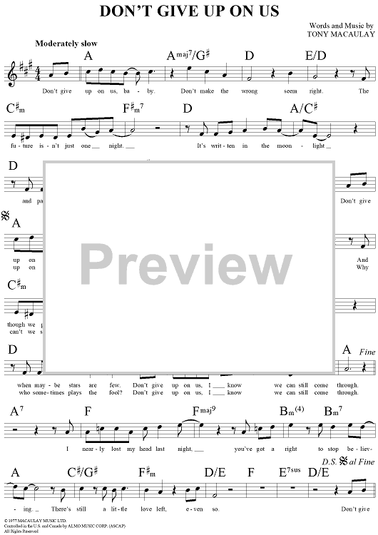 Digital Sheet Music for Don't Give Up On Us by Tony Macaulay, David Soul scored for Lead Sheet; id:119826